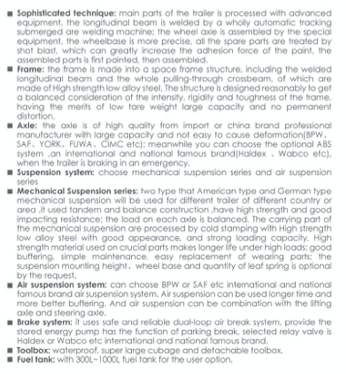 Commercial purpose built Trailers, Cargo Series, Low Bed Trailers, Dump Trucks, and special Vehicle series